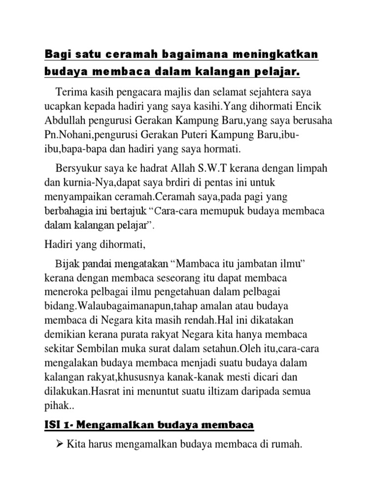 Bagi Satu Ceramah Bagaimana Meningkatkan Budaya Membaca Dalam Kalangan Pelajar Pdf